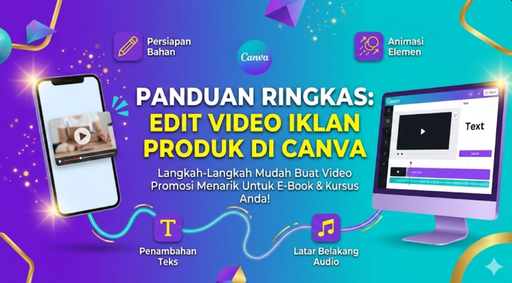 Tutorial Ringkas Mengedit Video Iklan di Canva Video tersebut menunjukkan cara membuat video promosi produk (seperti e-book atau