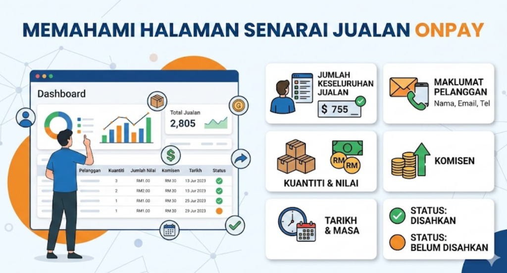 Video ini menerangkan fungsi setiap bahagian yang terdapat pada papan pemuka (dashboard) OnPay untuk membantu ejen memantau prestasi mereka: