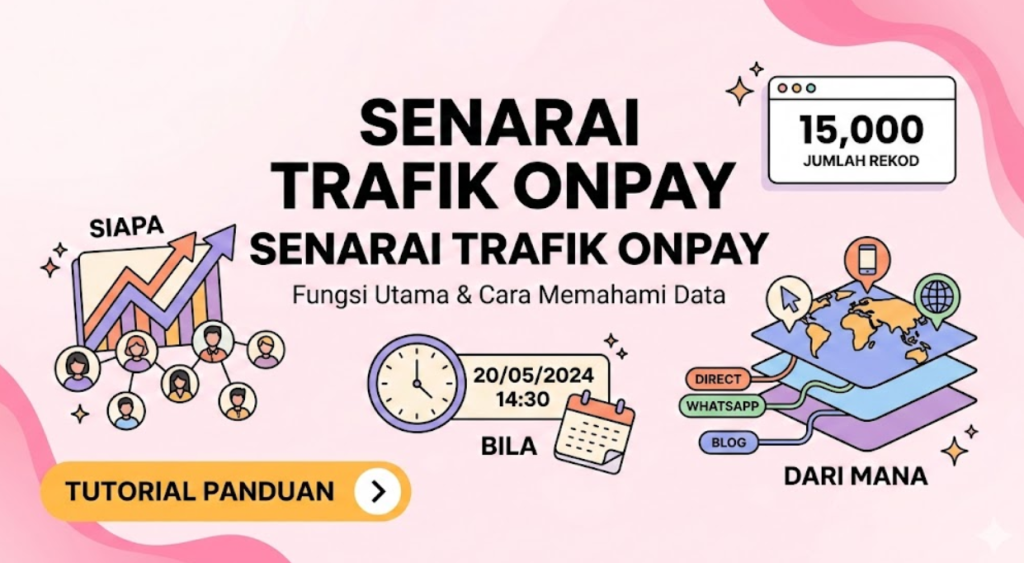 Fungsi Utama Halaman Senarai Trafik Halaman ini digunakan oleh ejen atau pengguna OnPay untuk memantau data pelawat yang mengakses pautan